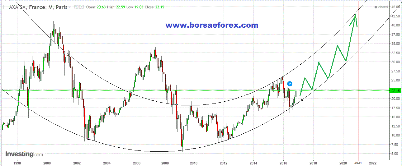 Il suo grafico è simile al grafico dell'indice CAC40, l'impostazione è decisamente rialzista e come il CAC40 fra se ed il lungo rialzo pluriennale c'è una resistenza che potrebbe cambiare di molto le cose. Per superare la resistenza basterebbe un 2017 un po' frizzante giusto quel tanto per convincere gli indecisi che il titolo ha potenzialità notevoli.