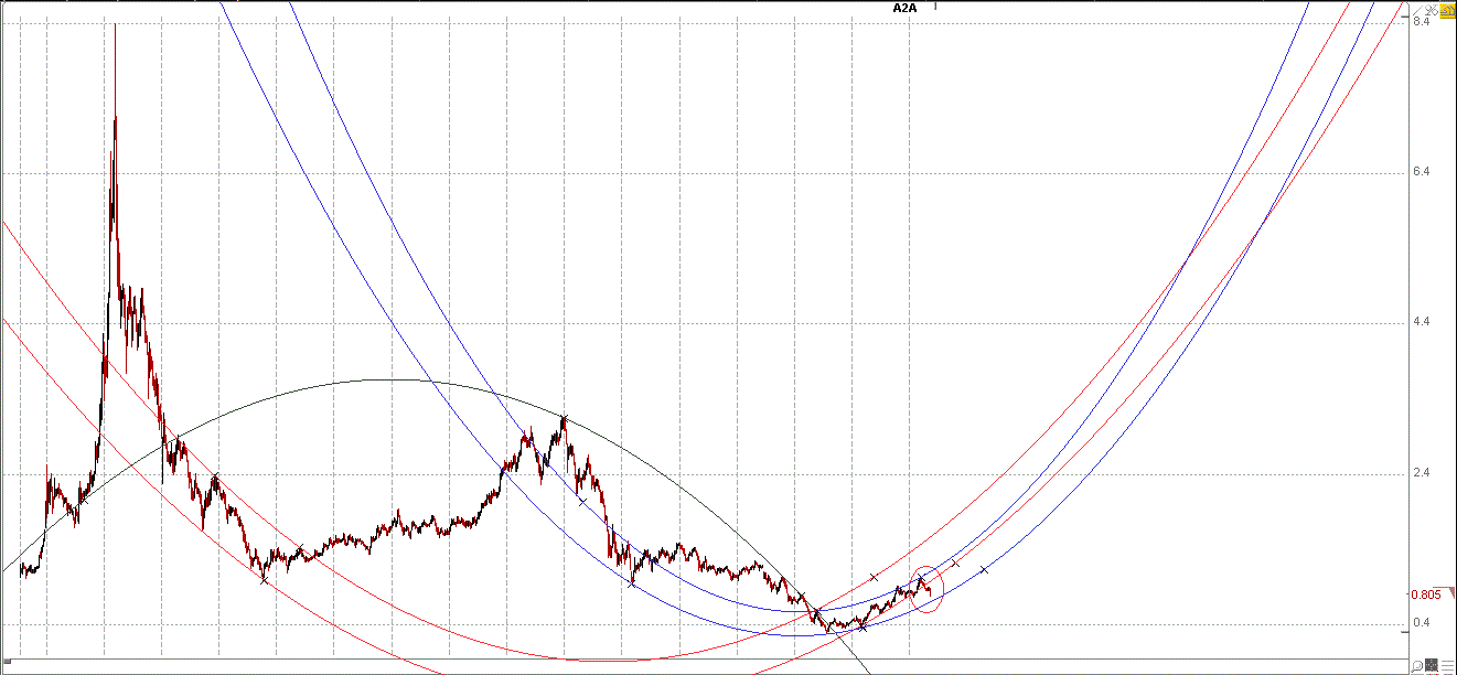Il titolo negli ultimi giorni ha violato il canale parabolico primario che avevo disegnato nel grafico in occasione dell'identificazione del ciclo primario.