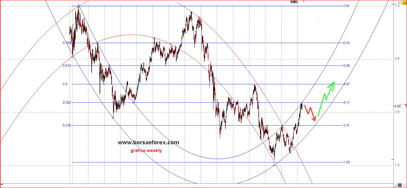 Al momento il rialzo si è arrestato a seguito del raggiungimento del livello 4,18 dove confluisco resistenze dinamiche e statiche.