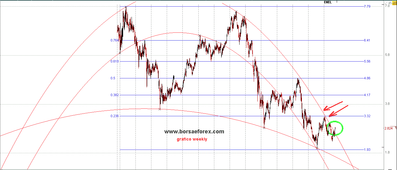 La resistente struttura grafica ribassista di Enel ha fornito un segnale importante nelle ultime due settimane. Qualcosa sembra cambiare e la violazione dell'evolvente parabolica di resistenza ne è la prova tangibile. E' evidente che sul titolo è tornato un certo ottimismo visto che i flussi di vendite si sono arrestati e hanno lasciato spazio agli acquisti.
