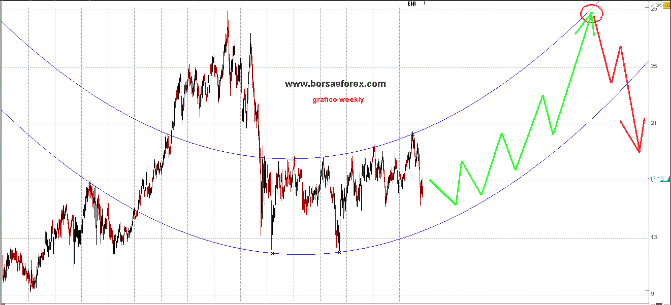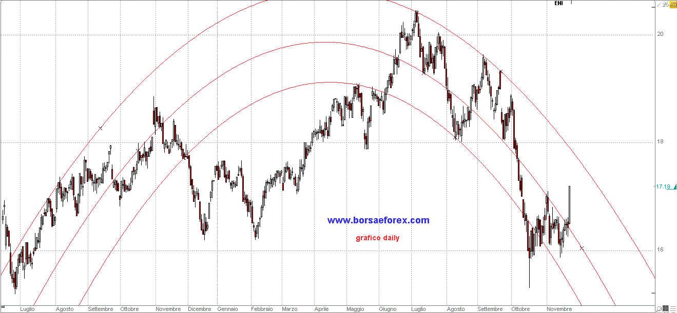 Alla luce di quanto emerso ieri con il petrolio ho impostato sui grafici di ENI analoghi canali parabolici ottenendo a mio avviso un buon risultato.