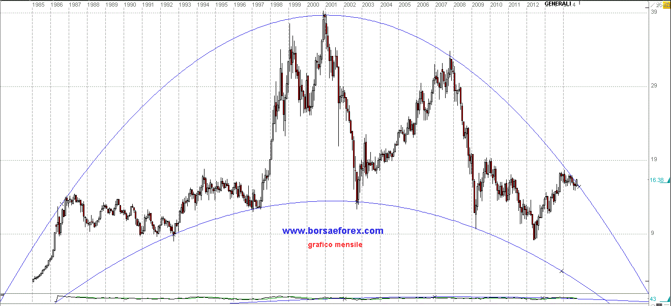 L'analisi come di consueto parte dal grafico di lungo periodo. Il mio database consente di disegnare il grafico a partire dal 1985, spero che basti per identificare correttamente i trend primari.