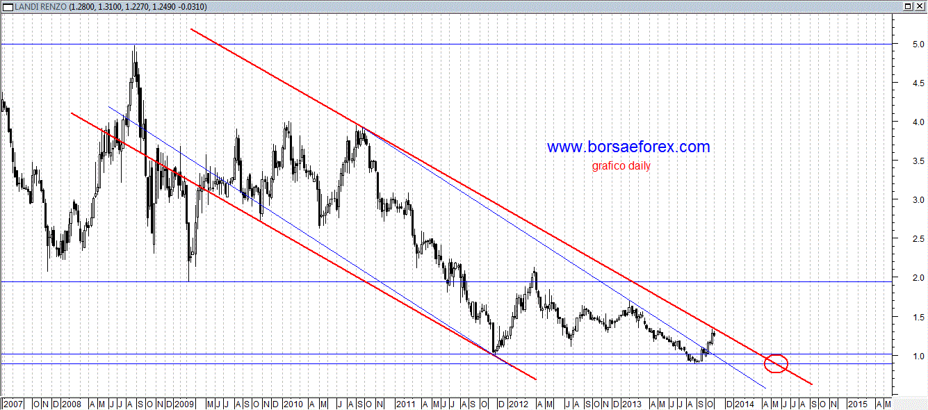 Sto riguardando il grafico di Landi Renzo, più lo guardo e meno mi convince. Il dubbio consiste nel fatto che la crescita del titolo del 30% dopo aver toccato il minimo storico non coincide con il conteggio del ciclo negativo primario che secondo me finirà all'incirca alla fine di aprile 2014. Rifaccio il conteggio e proprio i conti non tornano. In situazioni nelle quali qualcosa sfugge ovviamente non prendo posizione.
