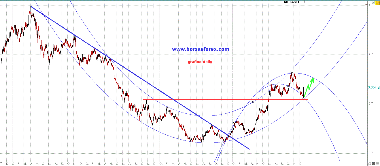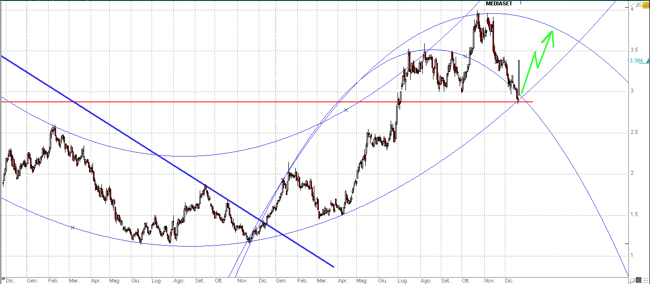 Dal punto di vista dell'analisi tecnica il raggiungimento del livello statico a 2,85 ha convinto gli investitori che il prezzo per ricomprare era stato raggiunto. Ho così deciso di comprare inserendo in portafoglio anche Mediaset.