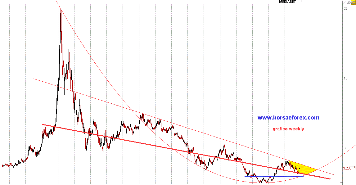 Ho dedicato molto tempo all'analisi dei grafici di Mediaset. Ho già detto che il minimo storico del 2012 per me rappresenta il minimo del macrociclo 2000-2012 e che quello in corso è il primo tratto del nuovo macrociclo rialzista. Detta in questo modo sembrerebbe che Mediaset sia bella che pronta a farmi guadagnare dei soldi.