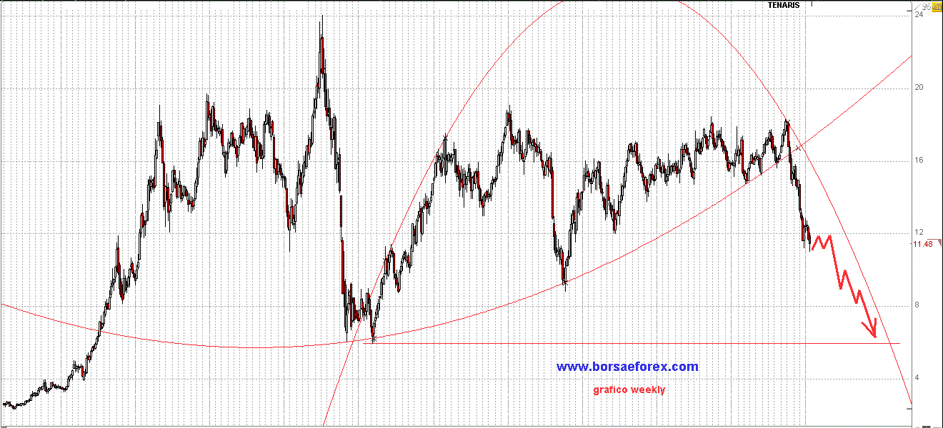Il grafico allegato mostra come la violazione dell'evolvente parabolica di supporto (grande occasione persa) abbia innescato una situazione negativa che si dipanerà a lungo, credo per un anno fino a far scivolare i valori del titolo in area 6 euro.
