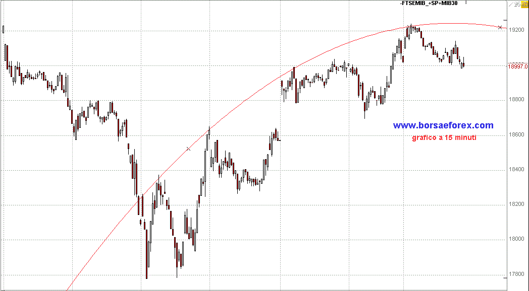 Ho aperto due posizioni: la prima long comprando 30 titoli Exxon a 93,14 dollari (pari a circa 2300 euro) come preannunciato nel post del 19 dicembre; la seconda, visto che credo nel ribasso della borsa italiana, short vendendo 1/10° dell'indice ftsemib con un'operazione pari a 1905 euro. Ho allegato un grafico a 15 minuti da cui ho preso spunto per l'apertura dell'operazione.
