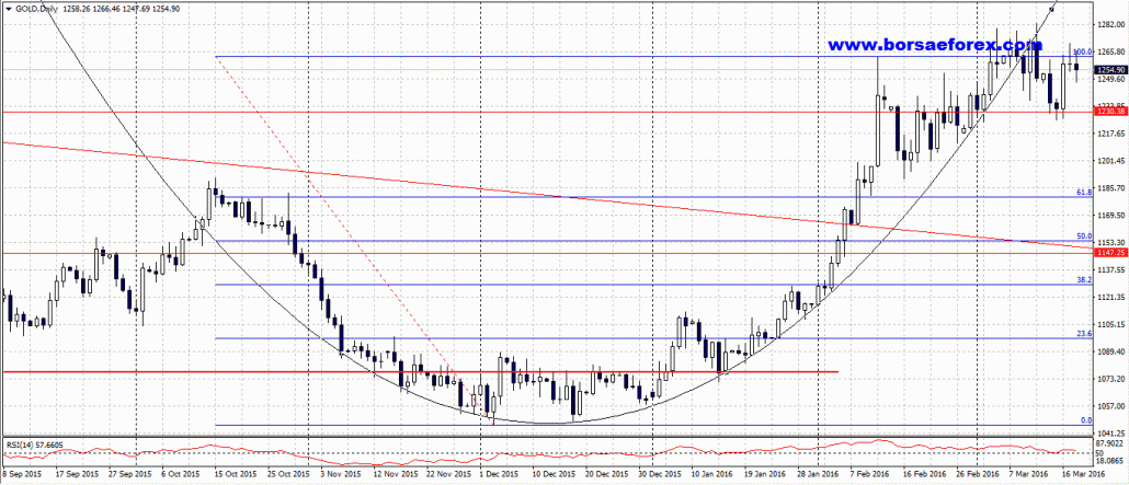 Il 2015 si è chiuso con l'oro che galleggiava in area 1060 dollari l'oncia e da li fino alla scorsa settimana è stato un crescendo continuo fino all'11 marzo quando è stata raggiunta quota 1282 dollari. Quello stesso giorno però molti trader una volta raggiunto quel livello hanno preferito vendere e così una giornata iniziata con il vento in poppa si è conclusa male andando ad intaccare il livelli di minimo delle giornate precedenti.
