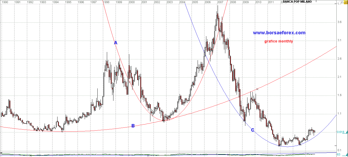 E' ormai da un po' di tempo che non analizzo una banca. Oggi è il turno della Banca Popolare di Milano e del suo grafico mensile.