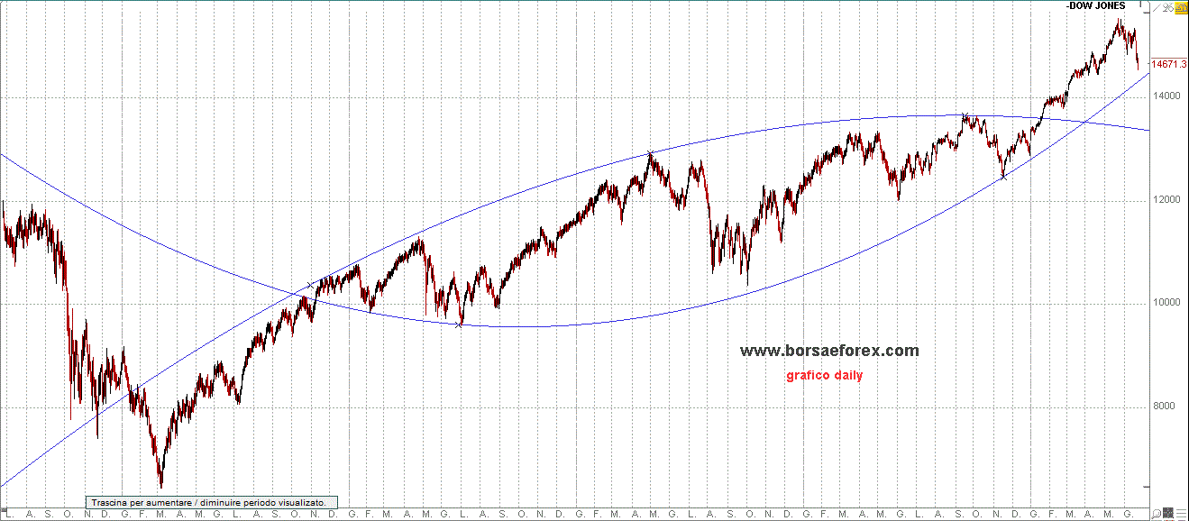 E' un momento difficile per i mercati e il calo di questi giorni, alla ricerca di un supporto, certo non aiuta. Credo che la discesa continuerà fino al raggiungimento del livello del precedente record storico del 2007. Poi con uno o più rimbalzi la fase positiva potrebbe riprendere la corsa. Eventuali violazioni ribassiste farebbero squillare più di un campanello d'allarme.